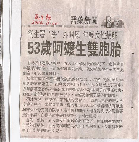 自體細胞殺胎 國內見首例