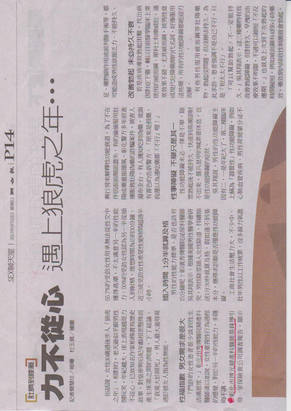 力不從心 遇上狼虎之年…彰化市博元婦產科醫師蔡鋒博引用一家保險套公司調查報告,顯示55.7%的受訪女性坦承無法從性交中...
