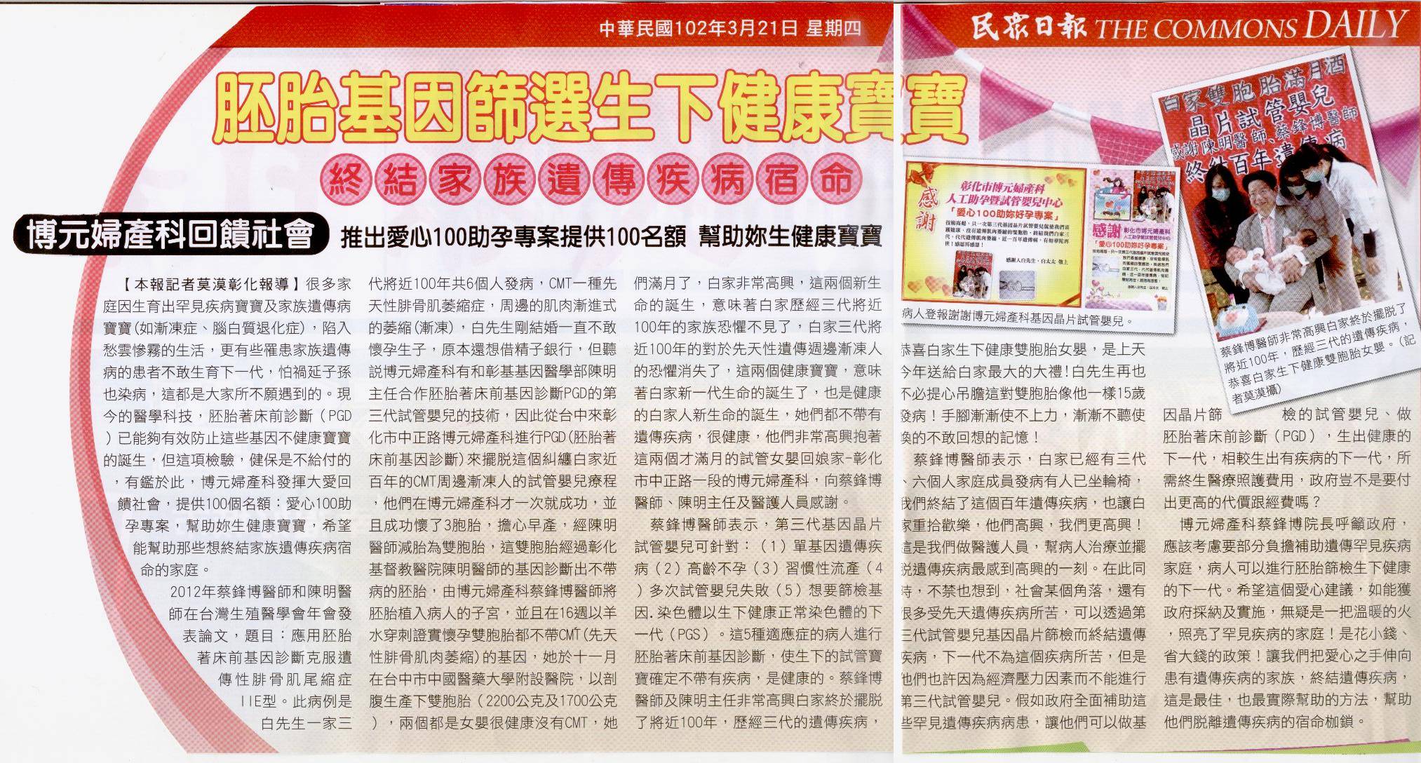 博元婦產科罕見的三代相傳 32歲就停經-民眾日報 http://www.flickr.com/photos/41541241@N08/8579228206/in/photostream <...