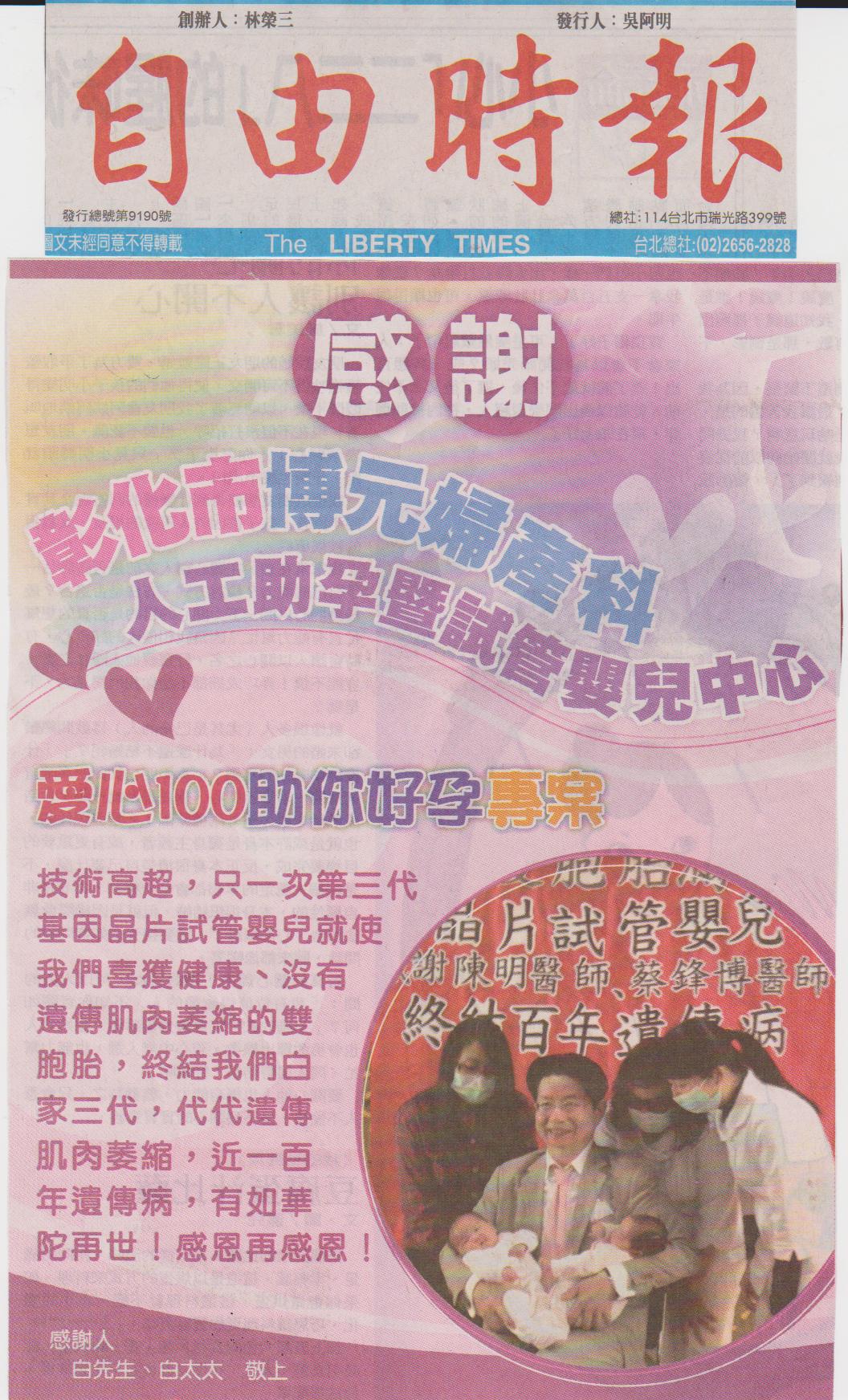 博元婦產科〝愛心〞100助您好孕 ?? 病人登報謝謝博元婦產科基因晶片試管嬰兒! 病人登報謝謝博元婦產科基因晶片試管嬰兒! http://www.flickr.com/photos/4154124...