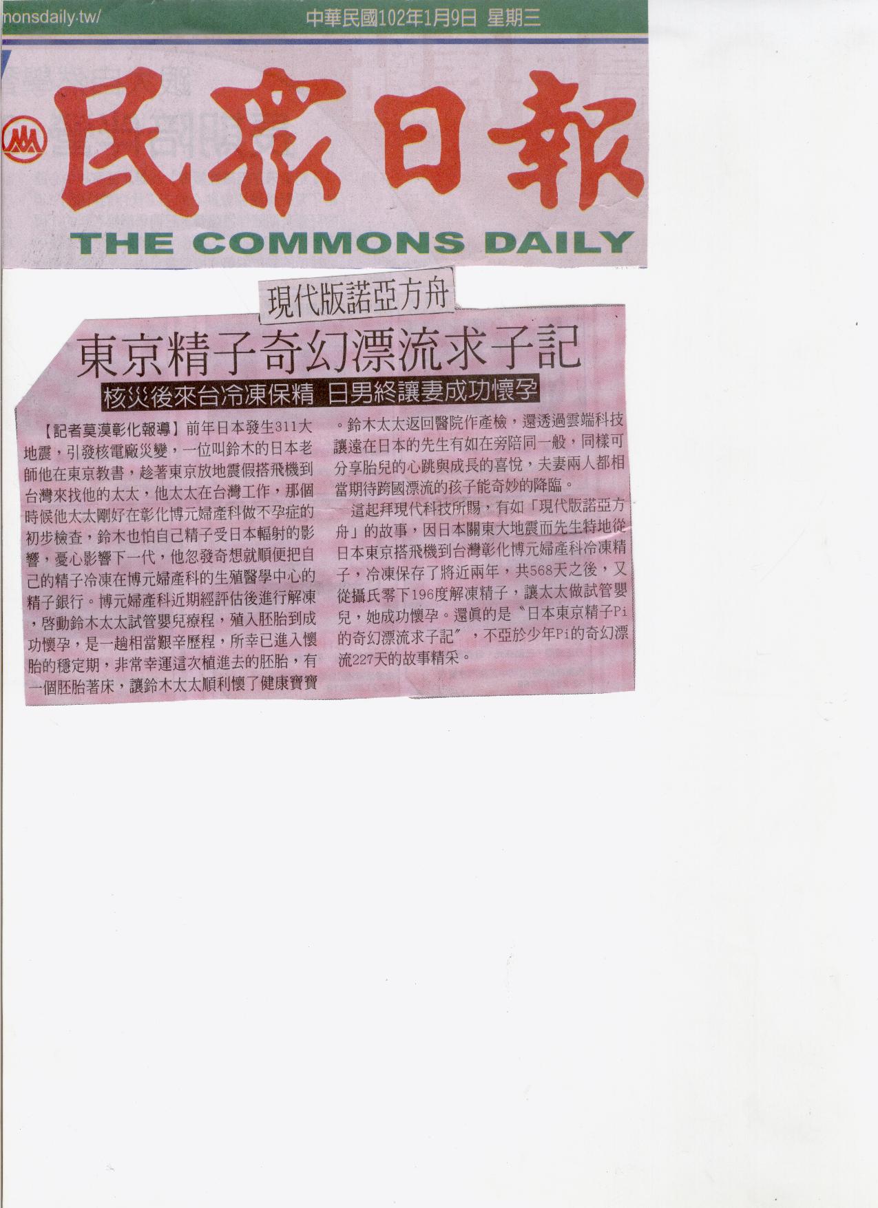 現代版諾亞方舟-東京精子奇幻漂流求子記 核災後來台博元婦產科冷凍保精 日男終讓妻成功懷孕 http://www.flickr.com/photos/41541241@N08/8373397284/in/photostream