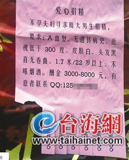 “不孕夫婦”求廈大男生捐精 女方要求“直接接觸” 2012年12月15日 13:53:37 來源: 東南網 0 ...