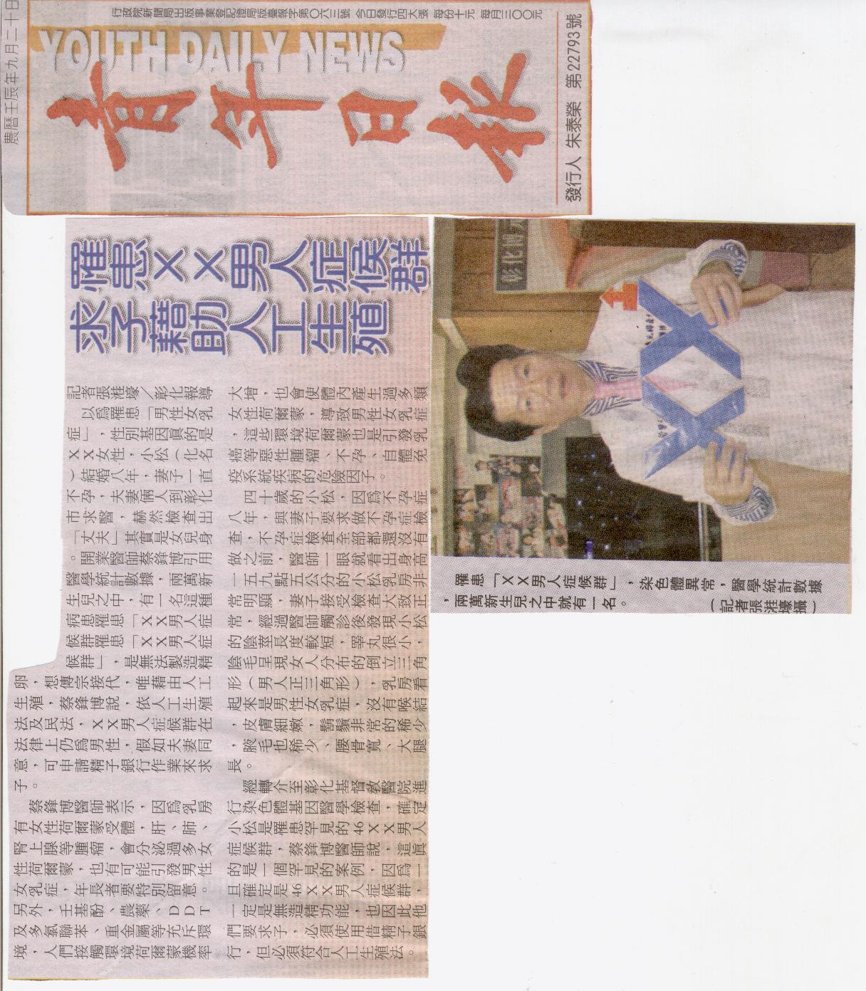 罹患xx男人症候群求子藉助人工生殖 -青年日報 2012.11.06 http://www.flickr.com/photos/41541241@N08/8160412750/in/photostream