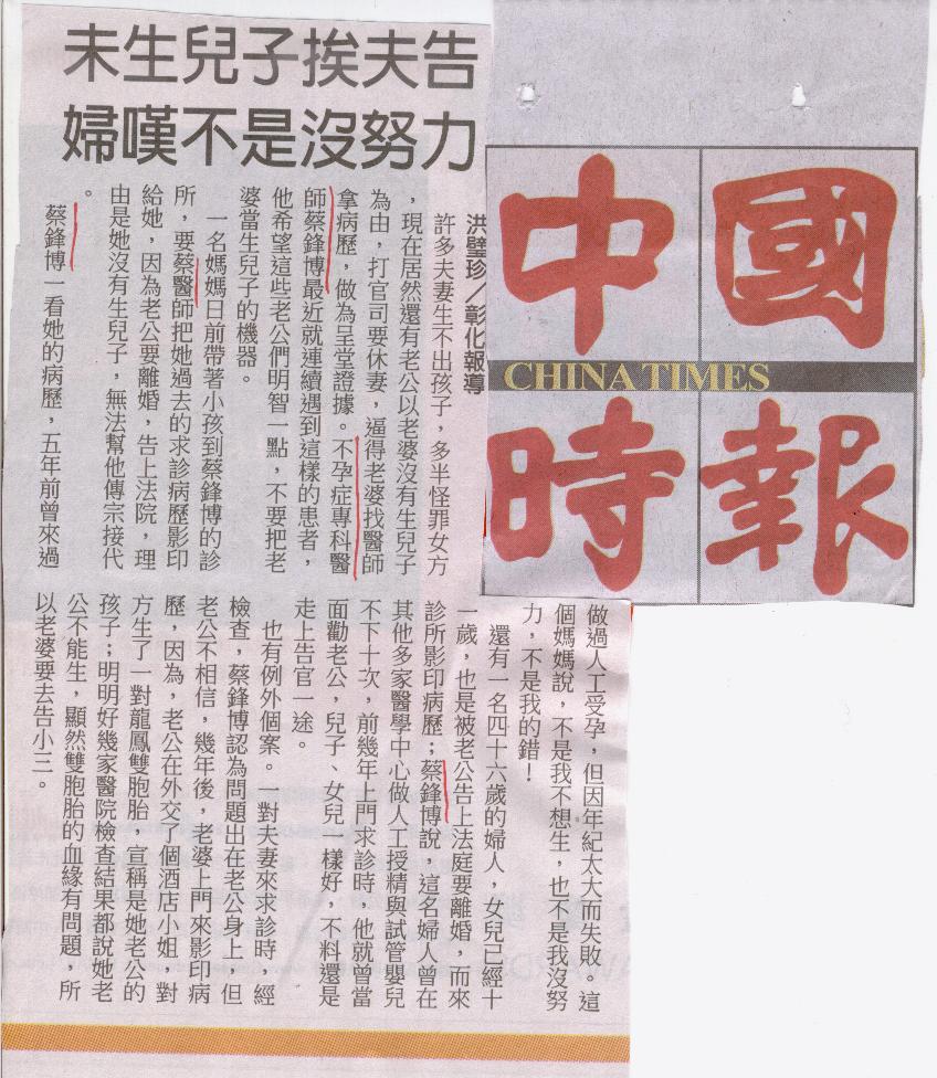 結婚8年不孕 丈夫原來是「女人」-- 中天新聞 報導博元婦產科試管嬰兒 cti xx http://www.youtube.com/watch?feature=player_embedded&v=dEpxeaBXPDo#! http://news.chinatimes....