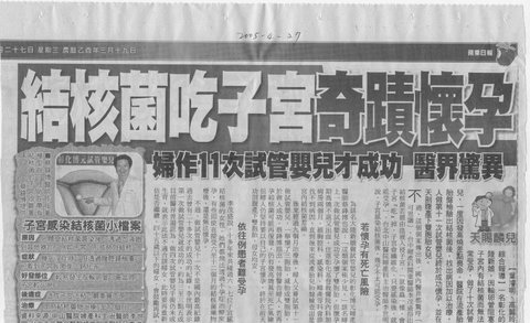她 在博元婦產科做試管嬰兒懷孕了,卻 血流如注可是仍然生下一名健康女嬰 不孕症: 1.  ...