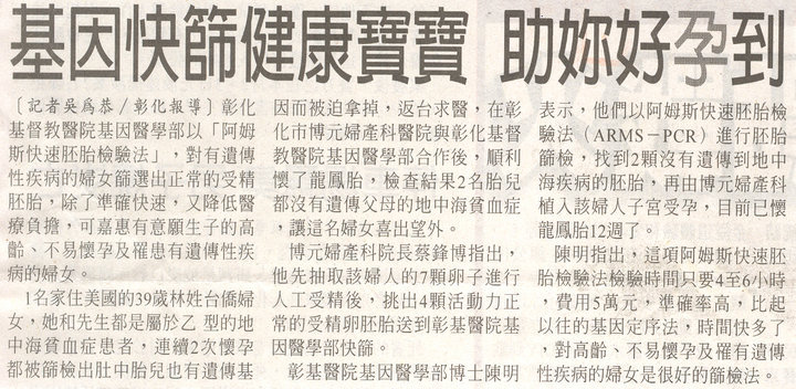 美國加州矽谷,39歲,懷過兩次乙型海洋性貧血重症,被迫中止妊娠,在博元婦產科進行基因晶片試管嬰兒PGD,生下一對健康雙胞龍鳳胎 ...
