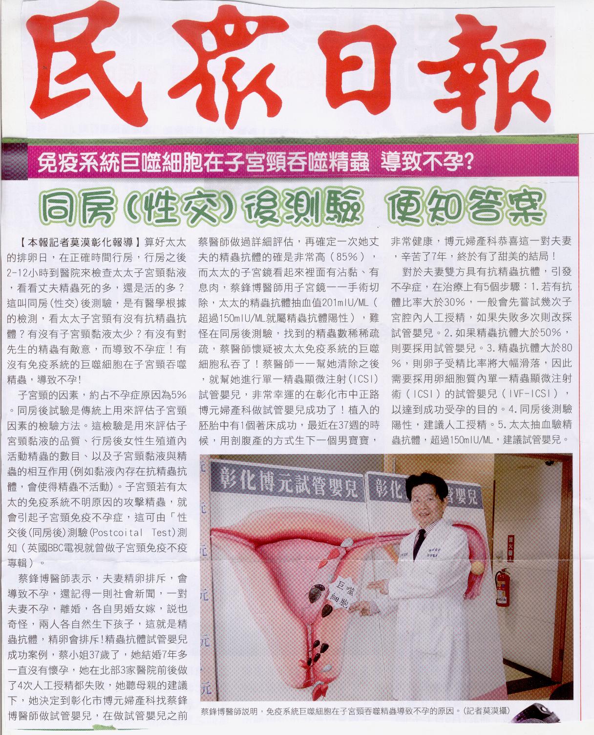 免疫系統巨噬細胞在子宮頸吞噬精蟲 導致不孕?-民眾日報 http://www.flickr.com/photos/41541241@N08/8650...