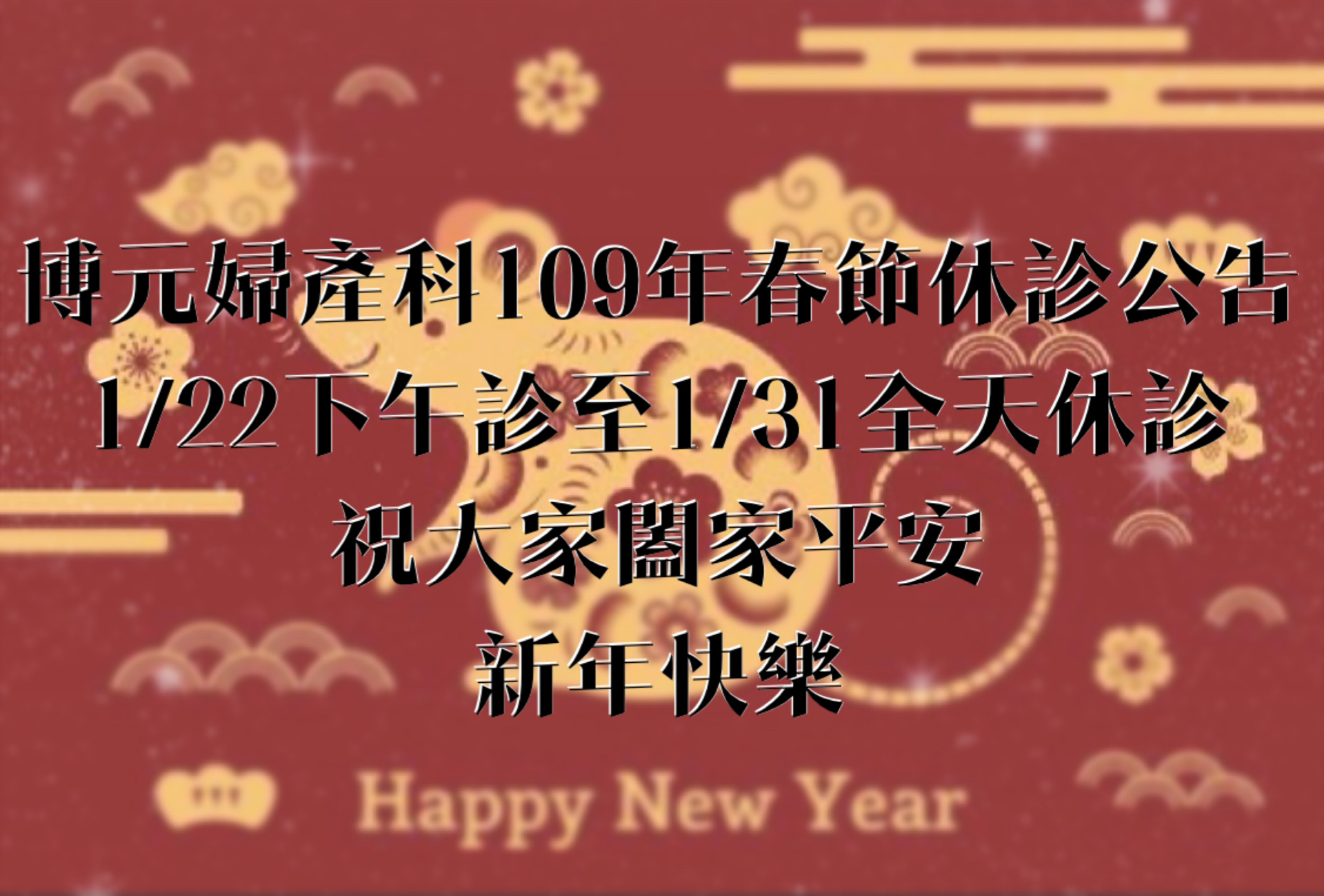 博元婦產科109年春節休診公告1/22下午診至1/31全天休診 祝大家何家平安 新年快樂